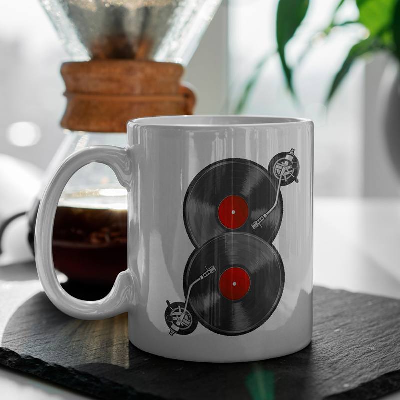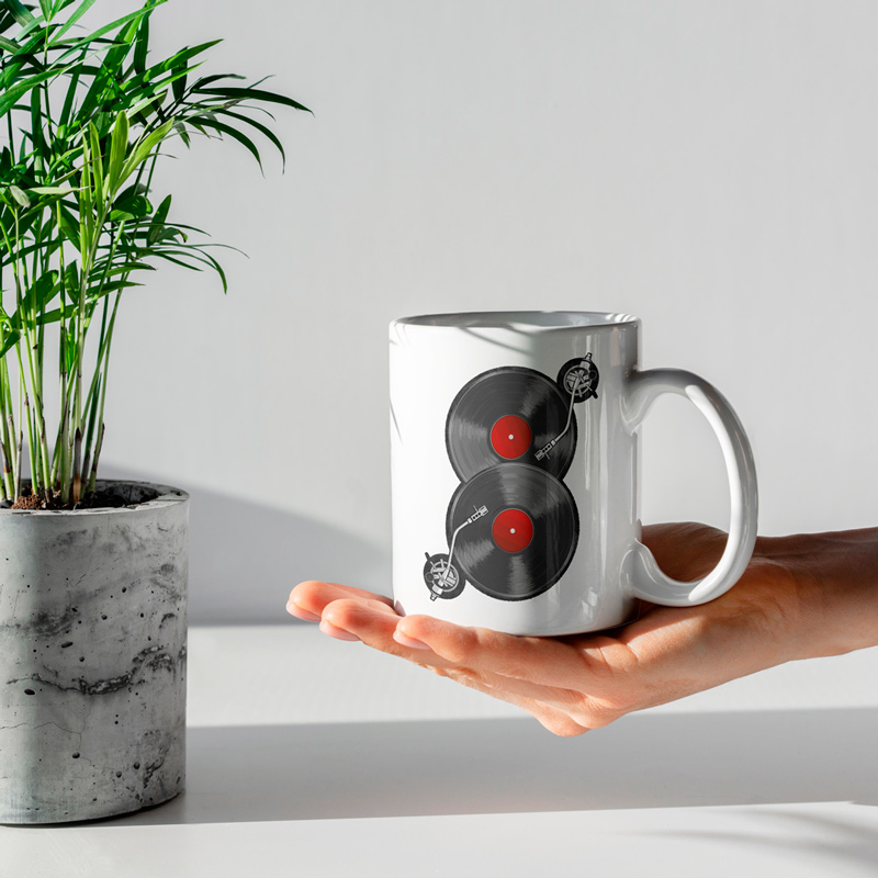 A cultura do Vinil teve seu start em 1948, mas seu auge de popularidade na mídia foi na década de 90. Assim sendo, tudo leva a crer que essa cultura será eterna. Desta forma, eis nossa fonte de inspiração para esta caneca, o icônico infinito Vinil.
