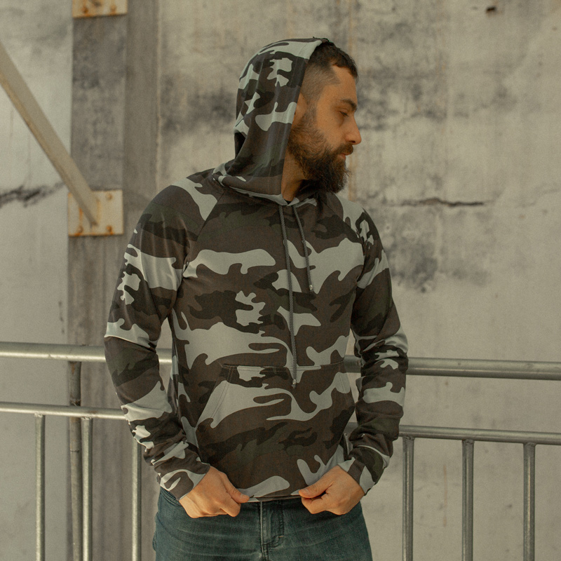 Nossa inspiração para este moletom vem das primeiras estampas camufladas que foram desenvolvidas durante a Primeira Guerra Mundial. O intuito era proteger os soldados com roupas que se camuflassem na vegetação. Desta forma, o estilo militar nunca saiu de moda e sempre foi uma tendência atual.
